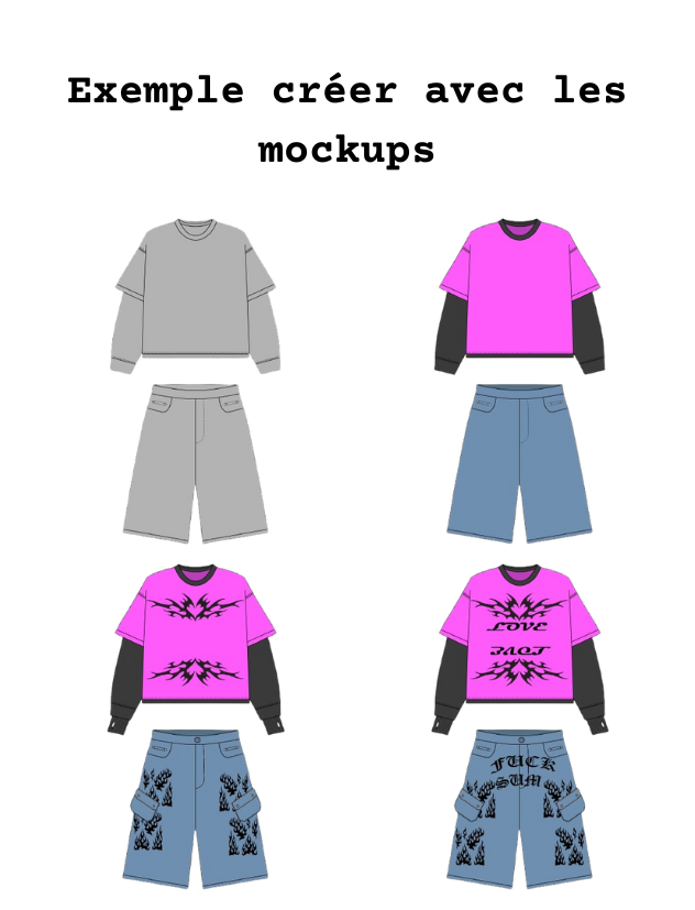 Les mockups sont des outils indispensables pour les créateurs de vêtements. Ils te permettent de visualiser tes designs sur des modèles réalistes avant même la production. En quelques clics, tu peux personnaliser les mockups pour voir instantanément à quoi ressembleront tes créations finales. Cela te fait gagner un temps précieux, réduit les coûts liés aux prototypes physiques, et améliore ton image de marque avec des visuels professionnels. Grâce aux mockups, tu peux présenter tes collections de manière plus convaincante comme le font déjà de grande marque (crtz, trapstar, divinbydivin...), et attirer davantage de clients et booster tes ventes.