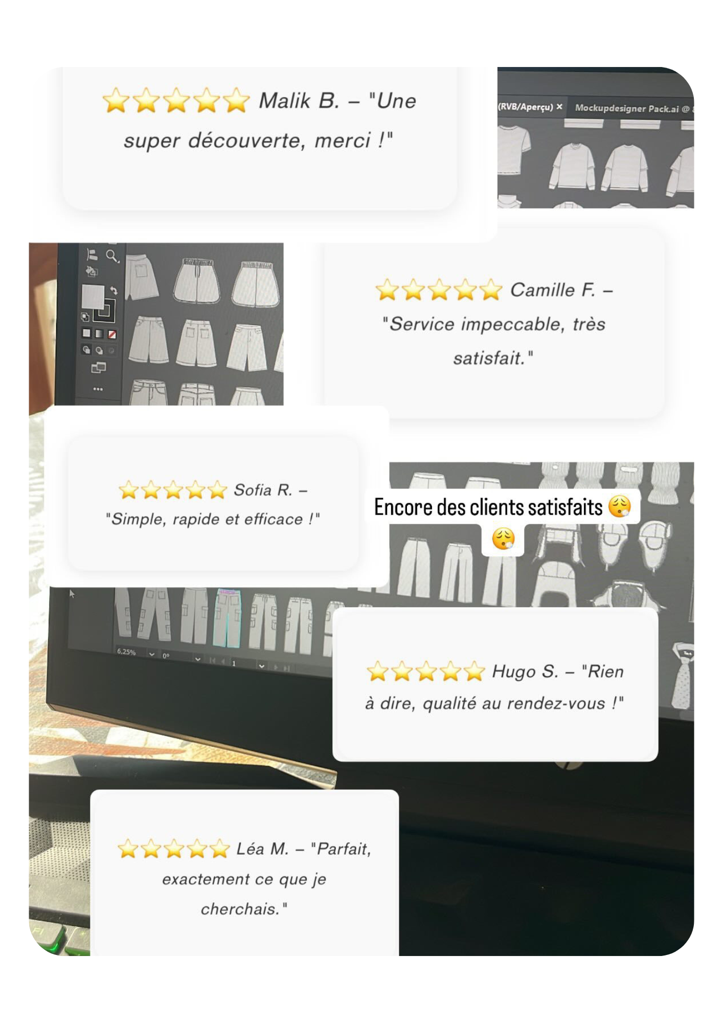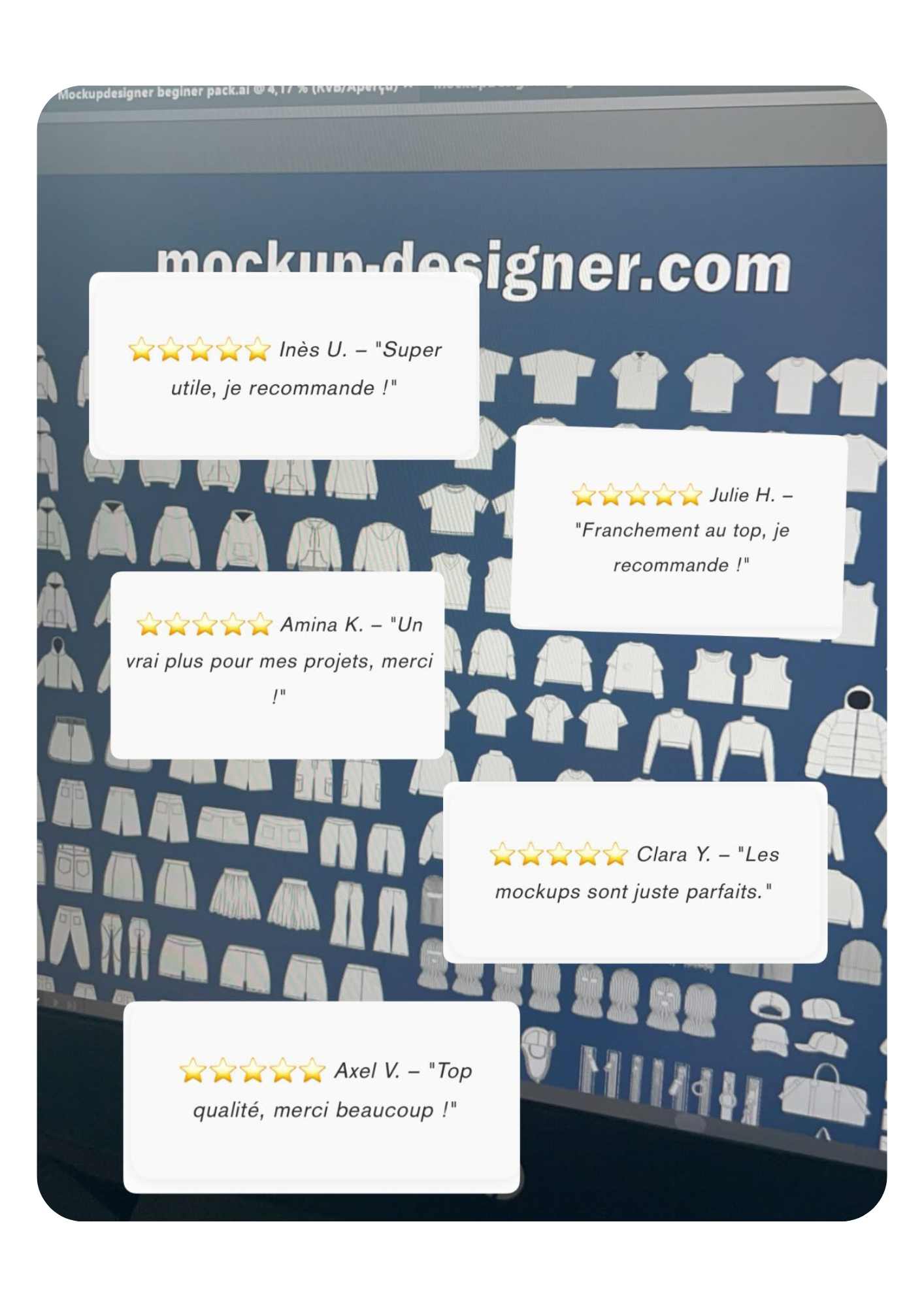 ⭐⭐⭐⭐⭐ Clara Y. – "Les mockups sont juste parfaits."